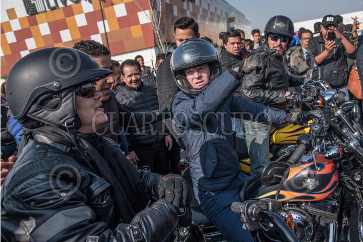 NEZAHUALCÓYOTL, ESTADO DE MÉXICO, 03FEBRERO2018.- Ricardo Anaya, precandidato a la presidencia la Coalición “Por México al Frente”, participó en una rodada motociclista que partió del Centro Deportivo Ciudad Jardín al monumento del “Coyote” en Nezahualcóyotl. Anaya, comentó que la construcción del nuevo Aeropuerto de la Ciudad de México es indispensable, pero debe llevarse a cabo con transparencia. FOTO: MARIO JASSO /CUARTOSCURO.COM
