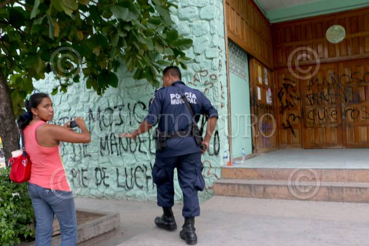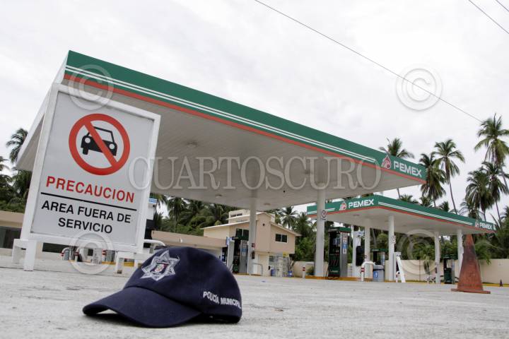 COYUCA DE BENITEZ, GUERRERO, 02JUNIO2015.- Se enfrentaron presuntos normalistas con policias municipales del Ayuntamiento, durante el enfrentamiento se escucharon disparos de arma de fuego, y en una gasolinera quedó tendido un policía que fue asaltada, el oficial fue trasladado al hospital de la región en estado grave. FOTO: BERNANDINO HERNÁNDEZ /CUARTOSCURO.COM