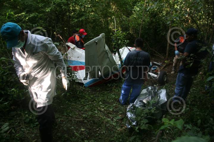 COYUCA DE BENITEZ, GUERRERO, 16OCTUBRE2017.- Autoridades confirmaron el hallazgo de la avioneta tipo Cessna modelo 152 de matrícula XB-MZN C15, perdida desde el primero de septiembre pasado, en el municipio de Coyuca de Benítez, mientras dos pilotos pertenecientes a la Escuela de Aviación Acapulco, efectuaban un vuelo entre Zihuatanejo y Acapulco. En la avioneta viajaban Hugo Alfredo Acuña Ortiz, de 21 años, originario de Zacatecas; y Jesús Fernando Rivera García, de 20 años, originario de Durango; instructor y estudiante. FOTO: BERNANDINO HERNÁNDEZ /CUARTOSCURO.COM