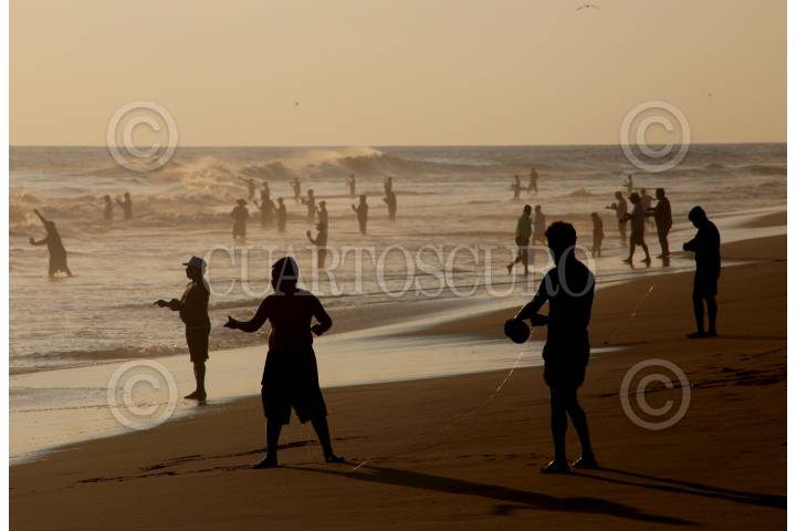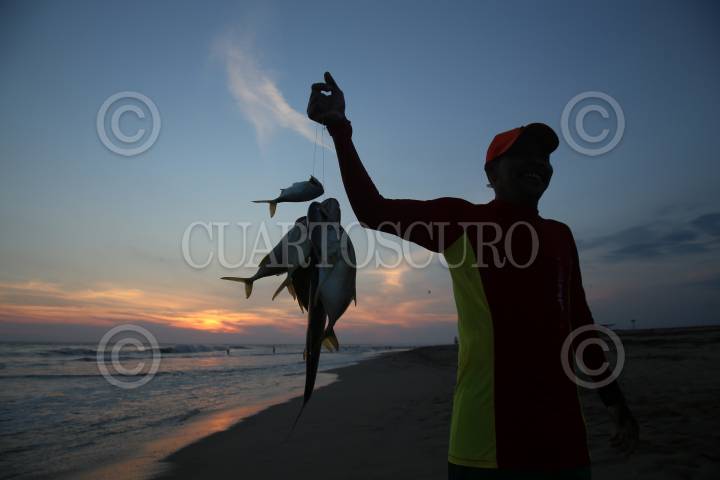BARRA DE COYUCA, GUERRERO, 08NOVIEMBRE2018.- Decenas de habitantes de la comunidad de la Barra de Coyuca y de pueblos aledaños todas las tardes pescan en la playa para llevar pescado fresco para alimentar a sus familias, y también para vender en las pequeñas enramadas que funcionan como restaurantes y a si ganarse un sustento para sus hogares, esta actividad la han realizado durante generaciones los habitantes de esta comunidad que viven también del turismo que vista el lugar en vacaciones. FOTO: CARLOS ALBERTO CARBAJAL /CUARTOSCURO.COM