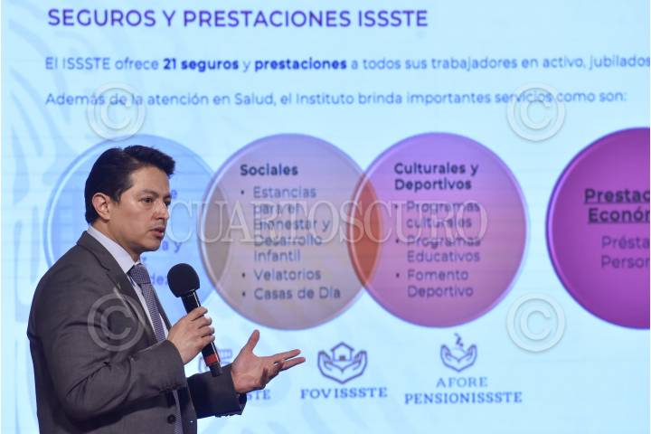 Edgar Díaz Garcilazo, Normativo de Prestaciones Económicas del ISSSTE, durante conferencia de prensa en la que se brindaron detalles sobre los microcréditos que el gobierno federal ha puesto en disposición durante la emergencia sanitaria por coronavirus (covid-19).
