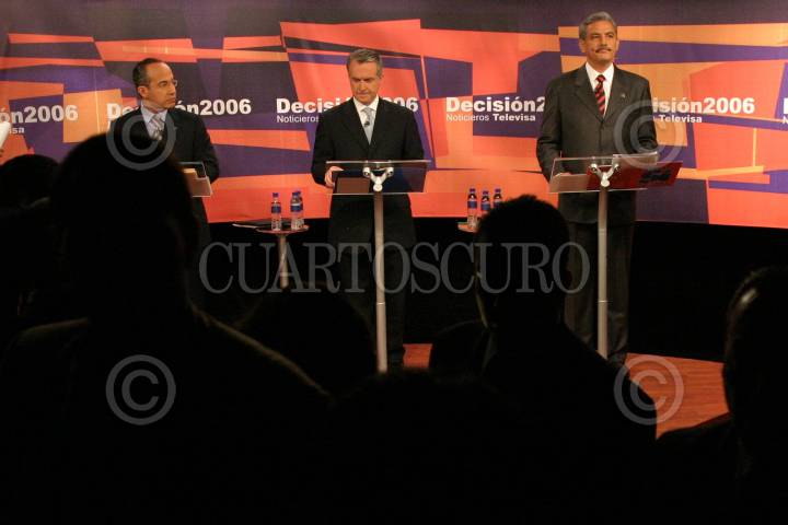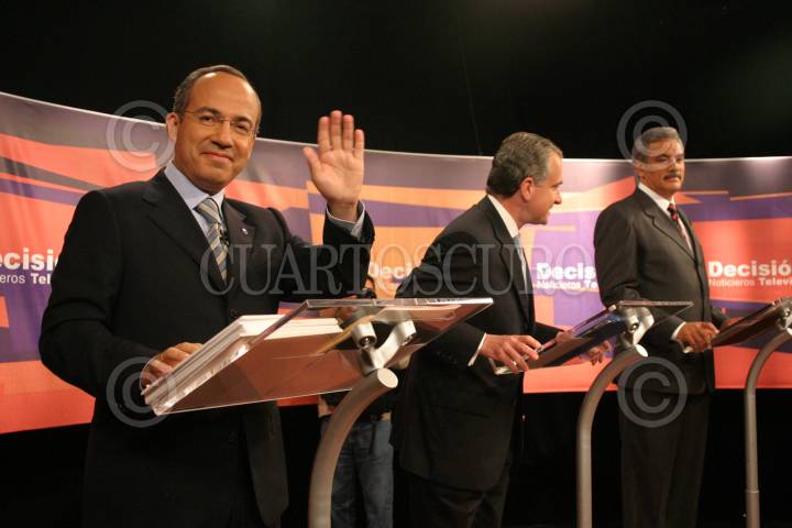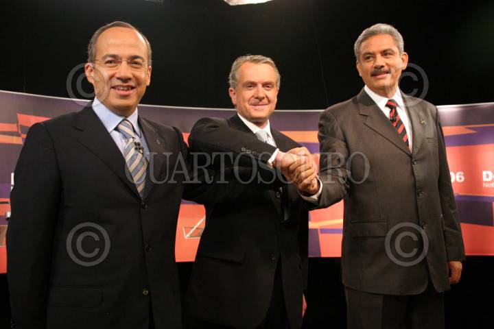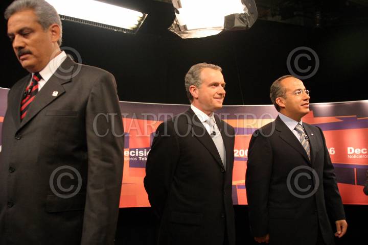 MEXICO, D.F., 09SEPTIEMBRE2005,- Felipe Calderon, Santiago Creel y Alberto Cárdenas, precandidatos panistas a la presidencia, sostuvieron un debate televisivo para presentar sus plataformas polítcas. FOTO: Moisés Pablo/CUARTOSCURO.COM