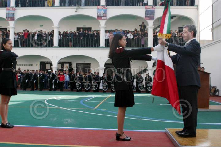 El secretario de gobernación Santiago Creel Miranda, precedió la ceremonia de izamiento, quema y abanderamiento en la Universidad del Valle de México, campus Roma. FOTO: Moisés Pablo/CUARTOSCURO.COM