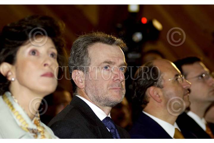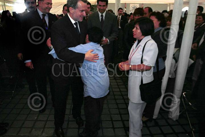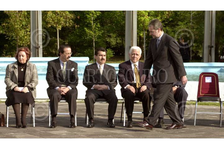 Santiago Creel Miranda, secretario de Gobernación y Ricardo García Cervantes, secretario de la Defensa dialogan mientras a su lado Beatriz Paredes escucha la intevención del presidente Vicente Fox. FOTO: Oswaldo Ramírez/CUARTOSCURO.COM