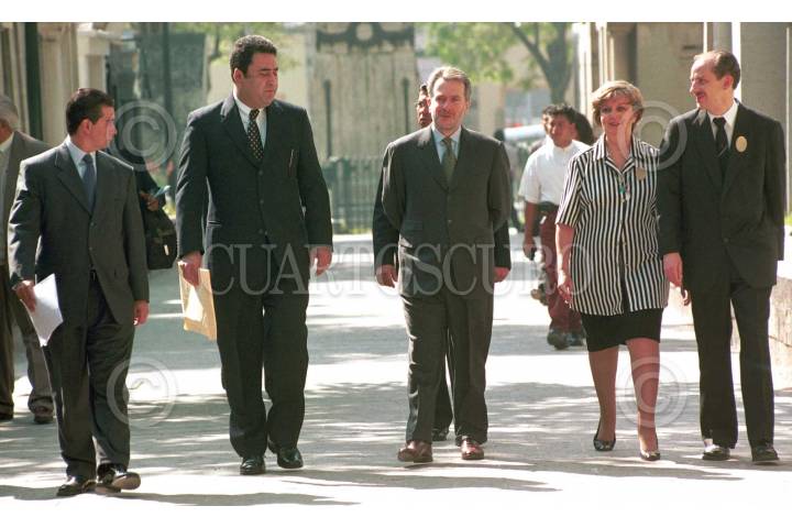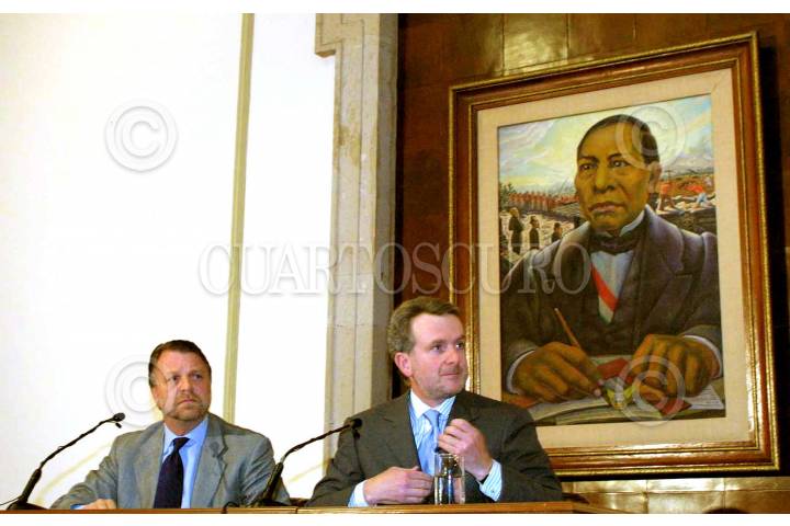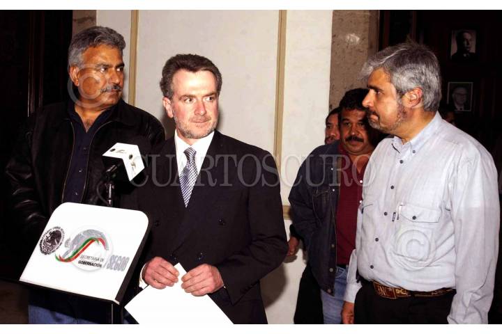 El canciller Jorge G. Castañeda y el encargado de la politica interna del país Santiago Creel Miranda, anunciaron en conferencia de prensa la excarcelación del General Francisco Gallardo Rodríguez. FOTO: Alberto Valdez/CUARTOSCURO.COM