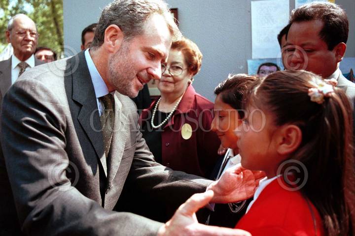 El secretario de Gobernación Santiago Creel saludo a niños de la escuela primaria Mariano Escobedo, depués de la ceremonia luctuoso del general de división, del cual se encuentran sus restos en la rotonda de los Hombres Ilustres del Panteón Dolores. FOTO: Victoria Valtierra/CUARTOSCURO.COM