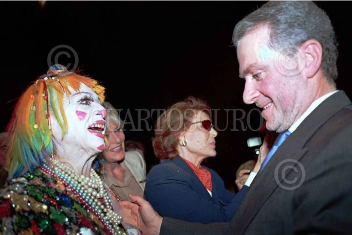Una payasita miembros de la ANDA saluda a Santiagao Creel, Secretario de Gobernación luego de la firma del acuerdo para denunciar a los actores que trabajen en territorio nacional de forma irregular. FOTO: Sandra Perdomo/CUARTOSCURO.COM