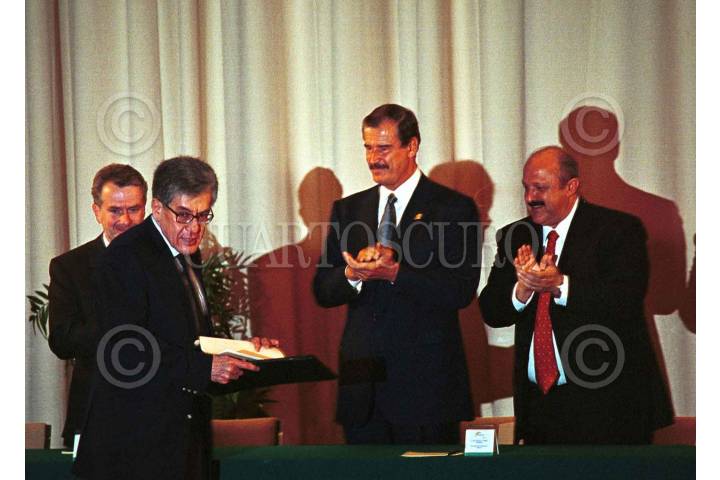 El escritor José Emilio Pacheco recibió el VI Premio Internacional Octavio Paz de Poesia y Ensayo 2003 de manos de Vicente Fox. El autor de "Las Batallas en el Desierto", es el primer mexicano que gana esta distinción. FOTO: Sandra Perdomo/CUARTOSCURO.COM