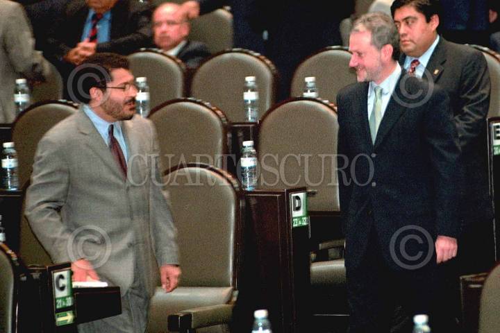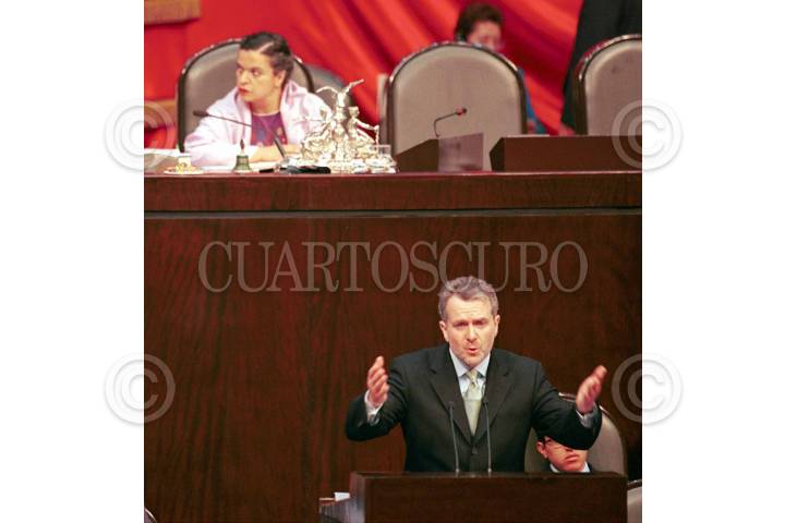 El Secretario de Gobernación, Santiago Creel Miranda, compareció esta mañana en la Cámara Baja como parte de la glosa del I Informe de Gobierno del Presidente Vicente Fox. Foto: Victoria Valtierra/Cuartoscuro