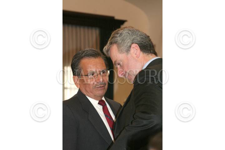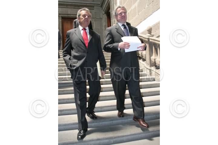 MÉXICO, D.F., 07MAYO2007.- Se llevo acabo la reunion para la reforma de estado en el palacio de mineria, en el cual asistieron diversos representantes de distintos partidos políticos. Al termino del evento, salieron conversando Porfirio Muñoz Ledo y Santiago Creel. FOTO: EZEQUIEL TLAXCALA/ CUARTOSCURO.COM