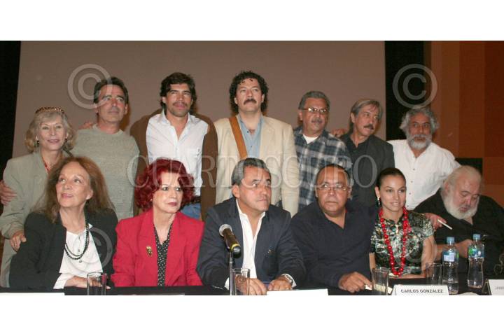 MÉXICO, D.F. 20SEPTIEMBRE206.- El elenco de la película "Crepúsculo Rojo" posa para los fotógrafos después de presentar dicha cinta. En la imagen: Los actores Isela Vega, Alberto Estrella, Homero Wilmer, Janneth Villareal, Ernesto Yañes, Martín Palomares, Cesar Jame, Enoc Leaño y Fernando Dávila. La maestra Maricela Fernández Vilolante. El director carlos González Morantes, el productor Oscar Blancarte. FOTO: PAOLA HIDALGO/CUARTOSCURO.COM