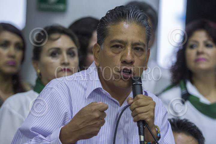 MÉXICO, D.F., 27JULIO2014.- Crescencio Morales Líder nacional del Barzón Popular durante la conferencia que realizó junto a trabajadores jubilados de Mexicana de aviación en la Terminal 1 del Aeropuerto. FOTO: ENRIQUE ORDÓÑEZ /CUARTOSCURO.COM