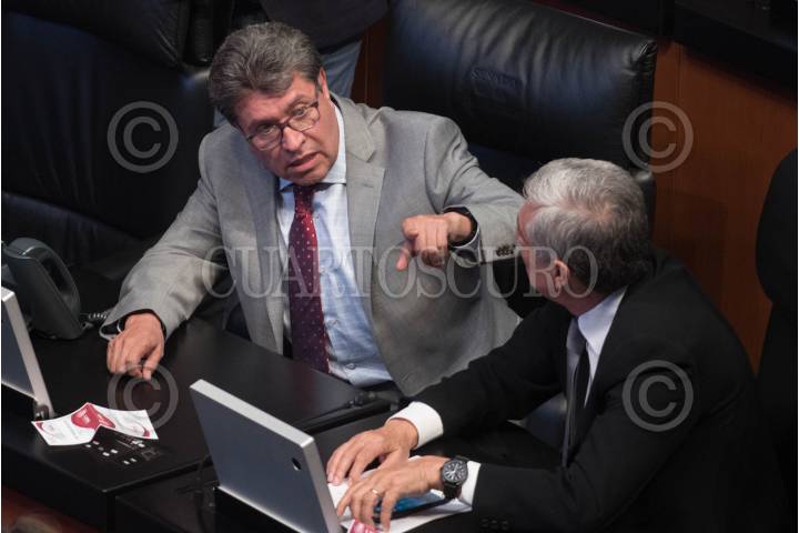 CIUDAD DE MÉXICO, 16MAYO2019.- Se realizó la sesión extraordinaria de la Cámara de Senadores en la que que no generó consenso para la discusión de leyes secundarias de la Guardia Nacional, por lo que se pospuso para la próxima semana. En la imagen, Ricardo Monreal, senador y coordinador de Morena, junto a Cristóbal Arias Solís, senador de Morena. FOTO: MARIO JASSO /CUARTOSCURO.COM