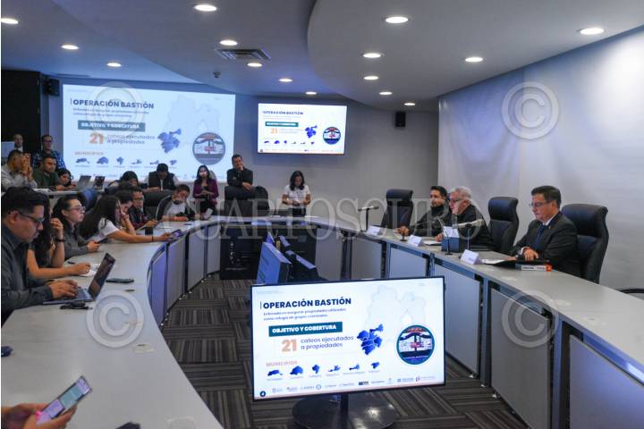TOLUCA, ESTADO DE MÉXICO, 14MAYO2025.- Cristóbal Castañeda Camarillo, Secretario de Seguridad en el Estado de México, en conferencia de prensa informó sobre los avances en materia de seguridad estatal a través de las diferentes Operaciones Estratégicas que se han implementados en la entidad mexiquense; con Enjambre, Bastión, Atarraya y Fortaleza, que se llevan a cabo con autoridades federales para combatir el crimen organizado y la delincuencia, se ha logrado disminuir un 33 por ciento en los delitos de alto impacto y afirmó que llegaron para quedarse. FOTO: CRISANTA ESPINOSA AGUILAR /CUARTOSCURO.COM