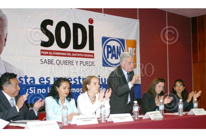 MÈXICO,D.F.08MAYO2006.- Alberto Montalvo, miembro del Foro Nacional de Iglesias Cristianas Evangèlicas, Margarita Saldaña Hernàndez, Diputada de la Delegaciòn Azcapotzalco, Gabriela Cuevas Barròn Diputada de la Delegaciòn Miguel Hidalgo, Demetrio Sodi de la Tijera candidato al Gobierno del Distrito Federal por el PAN, Cynthia Valeriano Lòpez Candidata a Diputada Federal por el Tercer Distrito y Yadira Alarcòn Candidata a Diputada Federal por el Octavo Distrito durante la reuniòn que sostuvieron con pastores de la Iglesia Evangèlica en el Hotel Sevilla Palace. Foto: M. Tulia Pèrez Bocanegra/CUARTOSCURO.COM