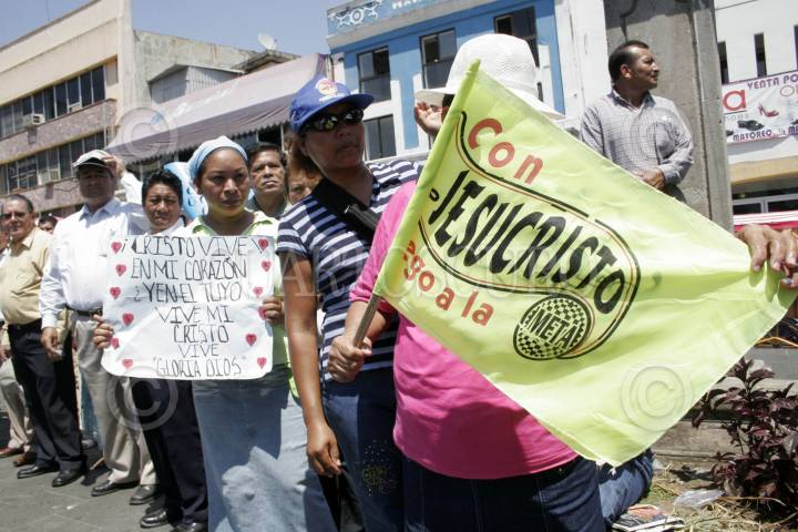 CENTRO, TABASCO, 17MARZO2008.- Alrededor de dos centenar de fieles creyentes en "Dios" de iglesias independiantes e iglesias Cristianas marcharon por principales calles y se manifestaron pacificamente en el parque público Benito Juarez en donde pidieron mayor apertura en la sociedad y politica. FOTO: MARCO POLO GUZMÁN HERNÁNDEZ/CUARTOSCURO.COM