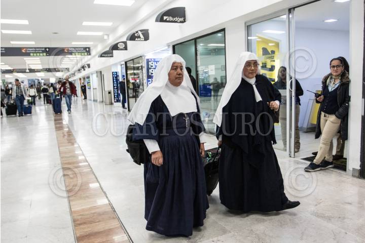CIUDAD DE MÉXICO, 19DICIEMBRE2018.- Dos monjas acompañadas de sus equipajes caminan por uno de los pasillos del Aeropuerto Internacional de la Ciudad de México (AICM). FOTO: MISAEL VALTIERRA / CUARTOSCURO.COM