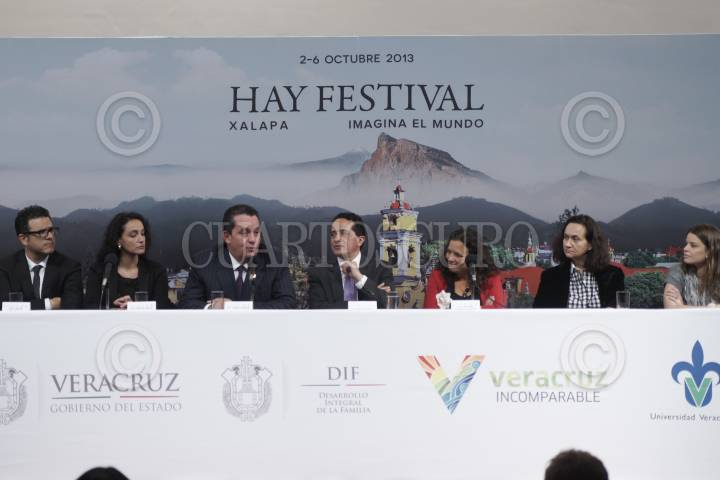 MÉXICO, D.F., 03SEPTIEMBRE2013.- El gobierno de Veracrúz ofreció una conferencia para detallar la agenda de la próxima "III Edición del Hay Festival", evento que ofrecerá actividades culturales de todo tipo como danza, música y teatro. La Orquesta Sinfónica de Xalapa participará en "El Ágora", uno de los recintos culturales más representativos de la ciudad. El costo de los boletos irá desde los 50 hasta los 120. La derrama económica fue de 10 millones de pesos. Asistieron Oscar Montes Eriksen,Dir. de desarrollo del Festival Hay, Julio Trujillo, Dir. Editorial de la dirección general de publicaciones de CONACULTA, Carlos Joaquin Gonzalez, Subsecretario de operación turística de la SECTUR, Cristina Fuentes la Roche,Dir. del festival Hay en Xalapa, Henry Grappa Guzmán, Secretario de turismo, cultura y cinematografía de Veracrúz, Sofia Martha, Coordinadora de la consejería cultural de la embajada de España y Lena Milosevic; Directora General de British Council México. FOTO: ALEJANDRO NEYRA /CUARTOSCURO.COM