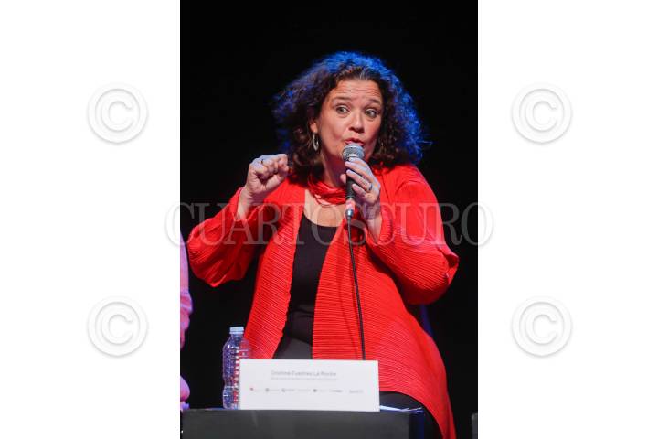 Cristina Fuentes La Roche, directora del Hay Festival, en la conferencia de prensa del Hay Festival.