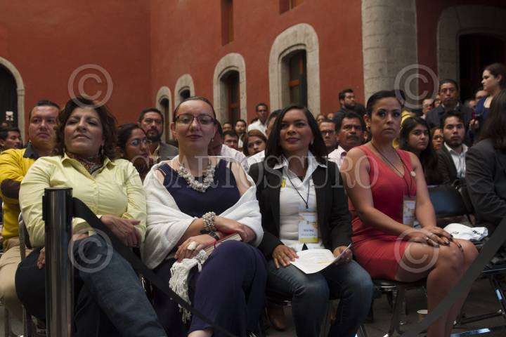 CIUDAD DE MÉXICO, 10JULIO2016.- Claudia Castellanos, secretaria de igualdad de géneros del PRD; La diputada Cristina Gaytán; la dirigente nacional del PRD, Beatriz Mojica; y Beatriz Mojica, y la asambleísta Luisa Yanira Alpízar Castellanos, durante el evento "Nuevos Rostros del PRD", en el Museo de la Ciudad de México. FOTO: MOISÉS PABLO /CUARTOSCURO.COM
