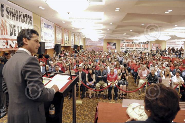 MÉXICO D.F., 08MAYO2011.- Enrique Peña Nieto, Gobernador del Estado de México, durante la clausurar la 59 Convención Nacional Ordinaria de la CROM; propuso redefinir y plantear las estrategias para combatir crimen e inseguridad, a fin de que se logren resultados y una democracia eficaz. FOTO: CUARTOSCURO.COM