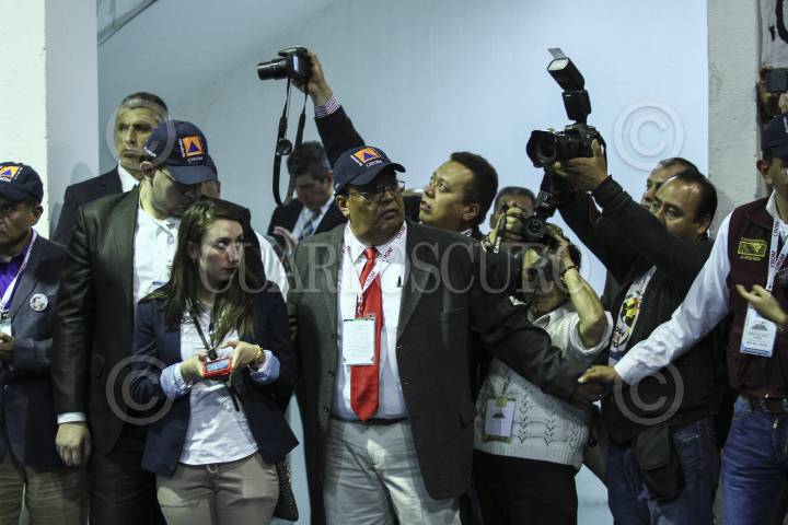 CIUDAD DE MÉXICO, 14MAYO2016.- Militantes de la CROM bloquea el trabajo de fotógrafos durante la Inauguración de la LXIV Convención Regional Obrera Mexicana realizada en Expo Reforma del centro de la ciudad. FOTO: ADOLFO VLADIMIR /CUARTOSCURO.COM