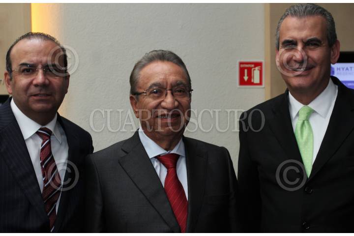 CIUDAD DE MÉXICO, 23SEPTIEMBRE2016.- En la imagen, Alonso Navarrete Prida, secretario de Trabajo, Isaías González de la CROM, y Miguel Ángel Chico, previo al evento. Tras dos horas de retraso, Alfonso Navarrete Prida, secretario de Trabajo y Previsión Social (STPS), presidió el evento “Reconocimiento al Empresario que Invierte y Promueve Empleos en México”, auspiciado por la CROM. Tuvo que abandonar el evento debido a que se encontraba enfermo de la garganta. FOTO: MARÍA JOSÉ MARTÍNEZ /CUARTOSCURO.COM