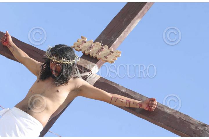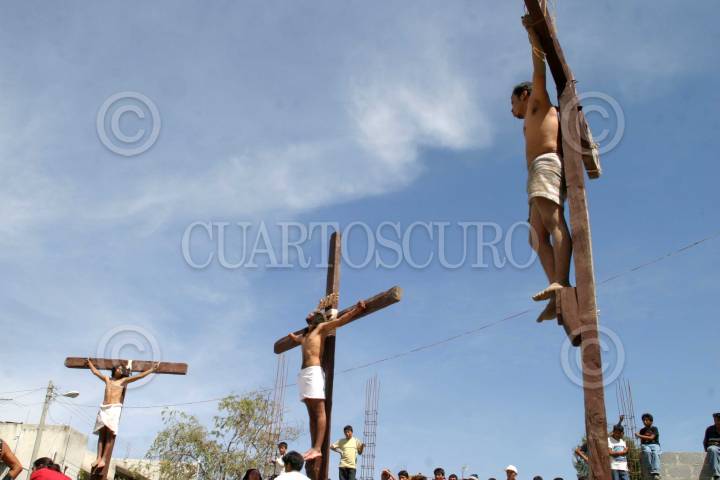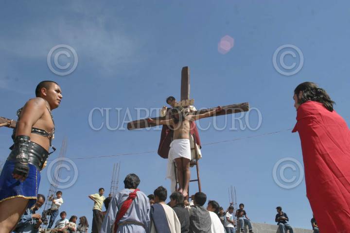 SANTA ANA CHIAUTEMPAN, TLAXCALA25MARZO2005.- Con la crucificción de Juesus, culminó la representación de la pasión de Crsito en Santa Ana Chiautempan. FOTO: Nelly Salas/CUARTOSCURO.COM