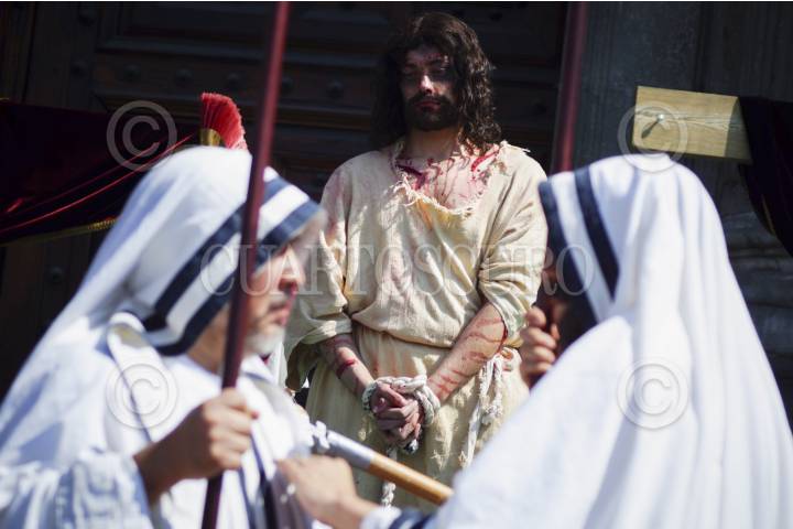 MÉXICO, D.F., 29MARZO2013.- Con dos horas de retrasado, en el atrio de la Catedral capitalina se realizó la representación del Viacrucis, con la participación de más de 30 actores miembros de la Compañía Nacional de Teatro Clásico "Fénix Novohispano". FOTO: ADOLFO VALTIERRA /CUARTOSCURO.COM
