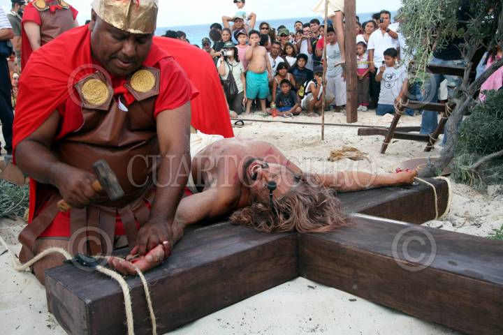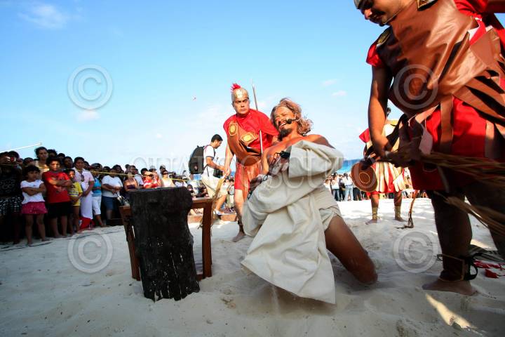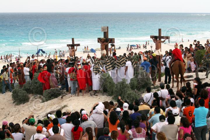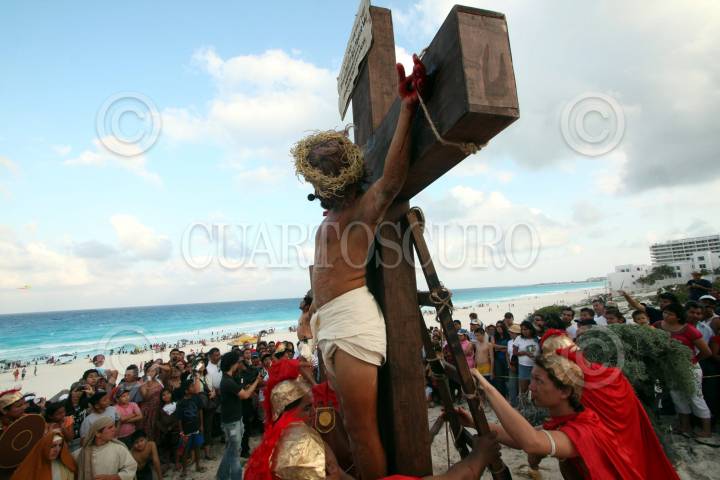 CANCÚN, QUINTANA ROO, 02ABRIL2010.- Aspectos de la represtancion del Viacrucis en una playa de Cancun, este viernes Santo, donde cientos de personas acudieron a observar la Pasión de Jesús. FOTO: AMARANTA PRIETO/CUARTOSCURO.COM