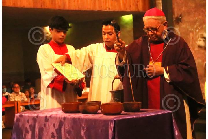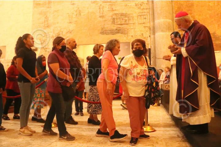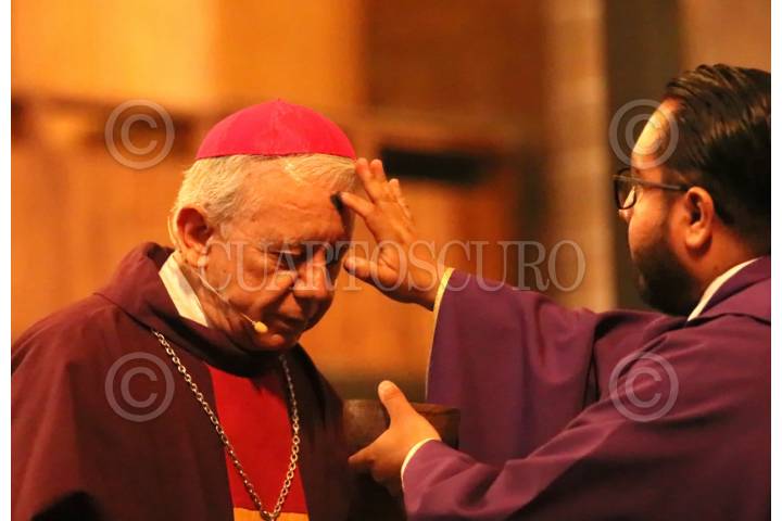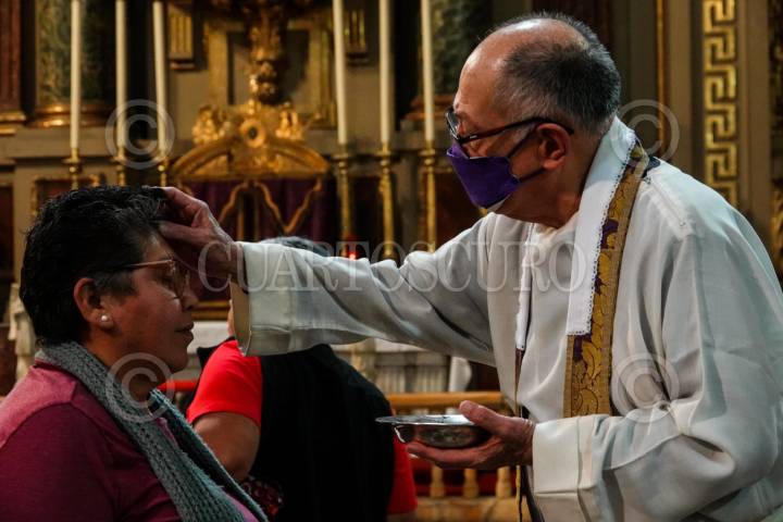 CUERNAVACA, MORELOS, 14FEBRERO2024.- El obispo Ramon Castro llevo a cabo la imposición de la ceniza en la Catedral de Cuernavaca. Con esta celebración inicia la Semana Santa, el Obispo llamo a su feligresía a incrementar su práctica religiosa durante esta época. FOTO: MARGARITO PÉREZ RETANA / CUARTOSCURO.COM