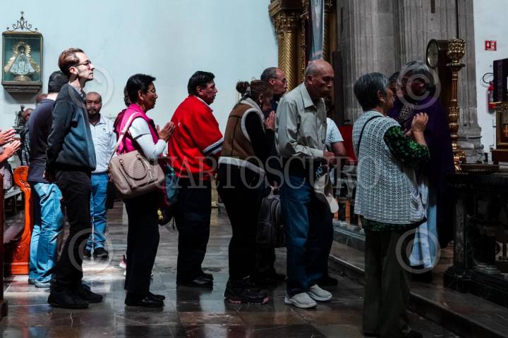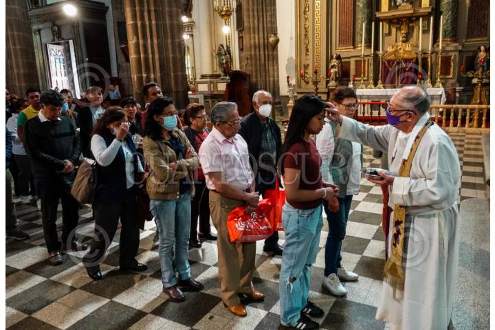 CIUDAD DE MÉXICO, 14FEBRERO2024.- A lo largo de la ciudad, miles de fieles acudieron a las iglesias para recibir la cruz de ceniza, lo que marca el inicio de la Cuaresma y el ayuno para la religión católica. FOTO: GALO CAÑAS/CUARTOSCURO.COM