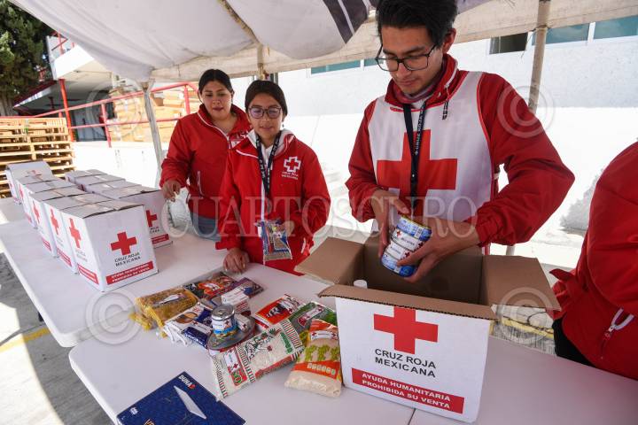 TOLUCA, ESTADO DE MÉXICO, 27OCTUBRE2023.- Cruz Roja Estado de México abre operaciones en 5 Centros de Acopio, uno de ellos en la Delegación Toluca para recibir ayuda para todas las personas damnificadas en Guerrero por el paso del Huracán Otis, estarán abiertos todos los días y apelan a la buena voluntad de los ciudadanos para apoyar en esta situación de emergencia. FOTO: CRISANTA ESPINOSA AGUILAR /CUARTOSCURO.COM