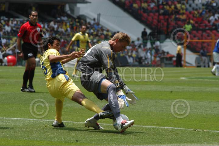 MEXDF 08AGOSTO2004.- Las águilas del America se enfrentarón al Cruzeiro de Brasil en la cancha del estadio Azteca. El portero André detiene el avance amaricanista. FOTO: Germán Romero/CUARTOSCURO.COM