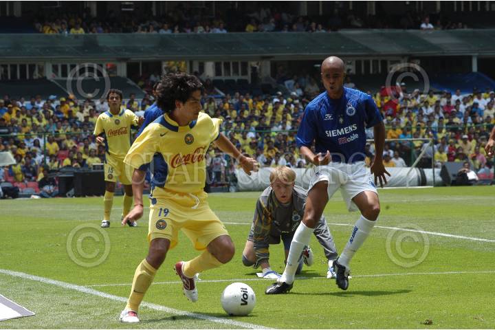 MEXDF 08AGOSTO2004.- Las águilas del America se enfrentarón al Cruzeiro de Brasil en la cancha del estadio Azteca. La defensa carioca se impone ante un ataque americanista. FOTO: Germán Romero/CUARTOSCURO.COM