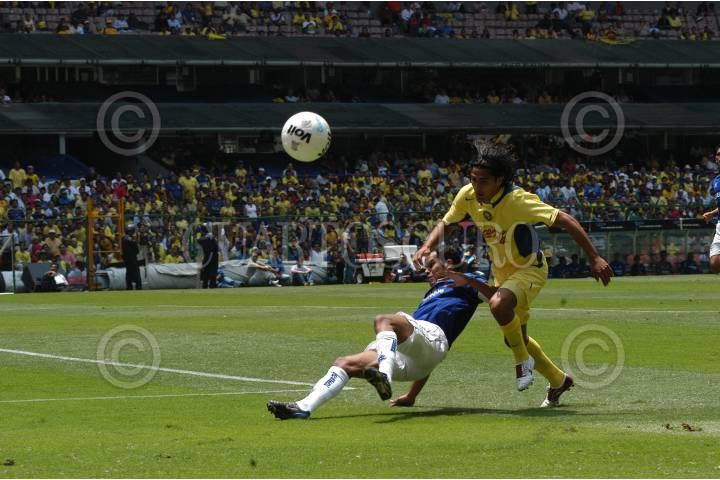 MEXDF 08AGOSTO2004.- Las águilas del America se enfrentarón al Cruzeiro de Brasil en la cancha del estadio Azteca. El amaricanista Jesús Mendoza, logra evadir a la marca del Cruzeiro. FOTO: Germán Romero/CUARTOSCURO.COM