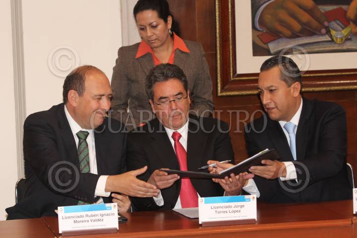 MÉXICO, D.F., 16ABRIL2013.- Rubén Moreira Valdez, gobernador de Coahuila, en compañía de Rafael Tovar y de Teresa, Presidente de Conaculta, encabezó el Homenaje al poeta Manuel Acuña en su 140 aniversario luctuoso. En ese marco, se dieron a conocer detalles de las diversas actividades con las que se recordará al poeta de origen coahuilense, en las que destaca el Premio Internacional de Poesía en Lengua Española Manuel Acuña. FOTO: GUILLERMO PEREA /CUARTOSCURO.COM