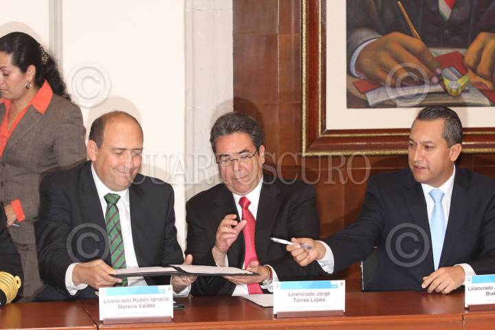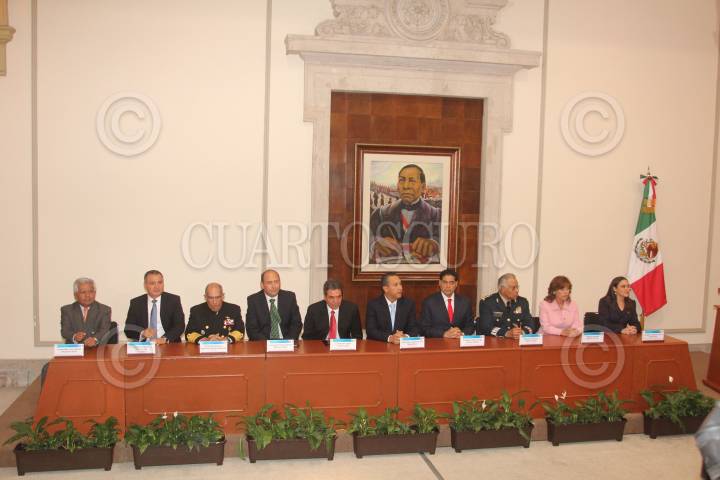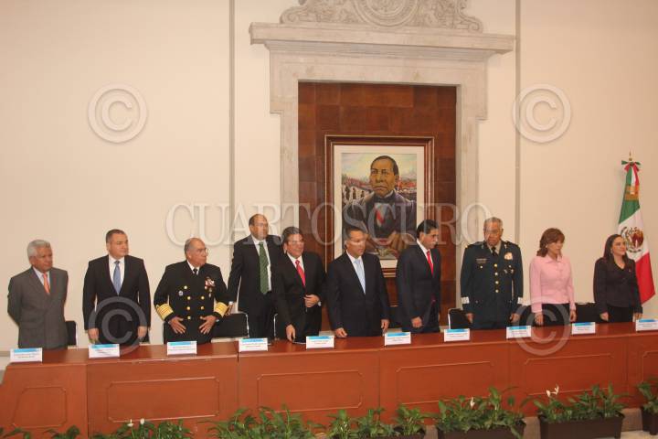 MÉXICO, D.F., 19OCTUBRE2011.- Francisco Blake Mora, Secretario de Gobernación, junto con el Gabinete de Seguridad Nacional durante la firma de acuerdo de seguridad con los gobernadores de Coahuila, Ruben Ignacio Moreira y el gobernador de Durango, Jorge Torres López. FOTO: SAÚL LÓPEZ/CUARTOSCURO.COM