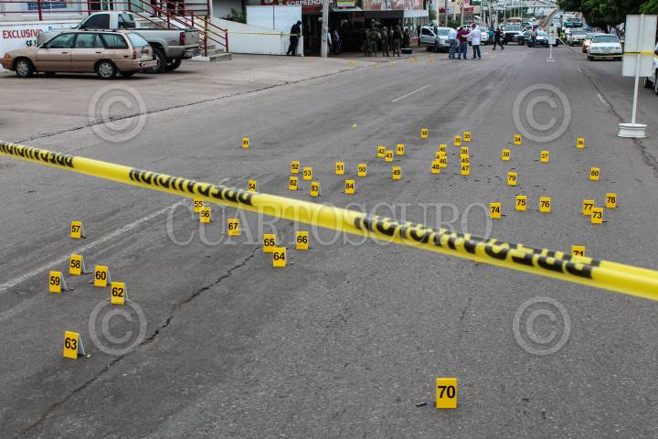 CULIACÁN, SINALOA, 10SEPTIEMBRE2015.- Un enfrentamiento entre dos grupos armados, dejo como saldo una persona sin vida debido a una bala perdida, la víctima fue identificada como Sonia Monzón de 45 años de edad, quien iba abordo de un camión urbano,los hechos ocurrieron en el boulevar Zapata colonia El Palmito, se localizaron alrededor de 80 casquillos para calibre Ak-47 como evidencia. FOTO: CUARTOSCURO.COM