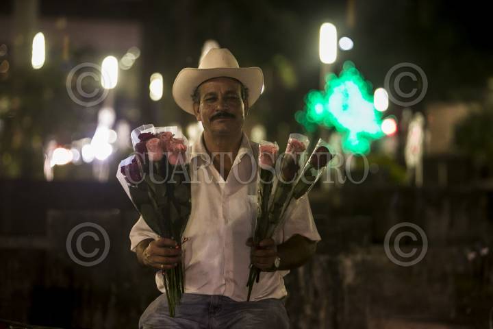 CULIACÁN, SINALOA, 16OCTUBRE2015.- Don Ilario Olivas, en compañía de de su esposa, acuden a la avenida Obregón a vender flores, velador es su principal trabajo, sin embargo aprovecha sus días de descanso para sacar un ingreso extra para el sustento familiar, esto debido a la falta de oportunidades. FOTO: RASHIDE FRIAS / CUARTOSCURO.COM