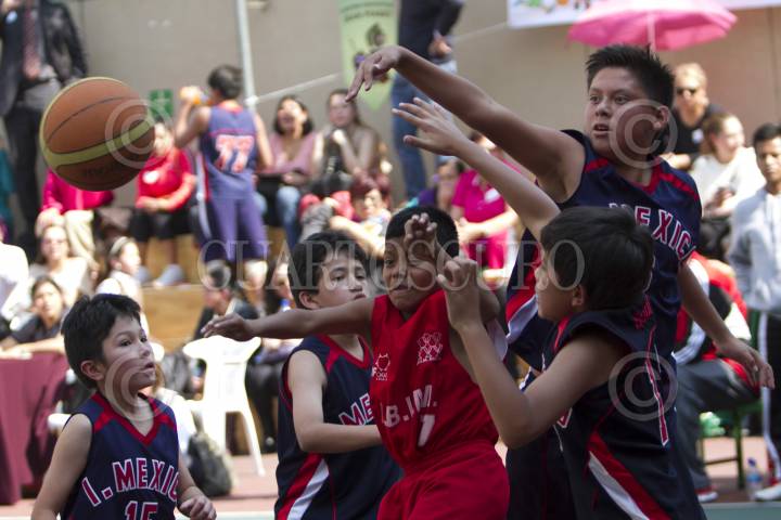 MÉXICO, D.F., 5DICIEMBRE2013.- El equipo de basquetbol de niños triqui de Oaxaca, integrantes de la selección de básquetbol infantil campeones del cuarto Festival Internacional de Minibásquetbol, acudieron a una escuela particular donde participaron en un par de juegos con alumnos de estos institutos. FOTO: GUILLERMO PEREA /CUARTOSCURO.COM
