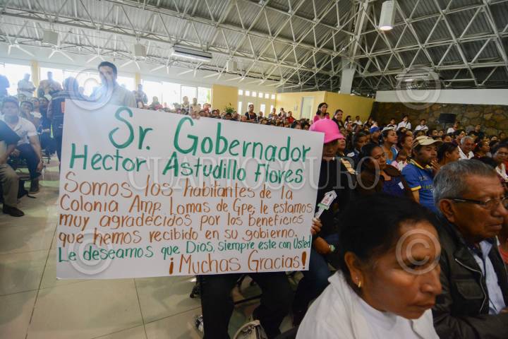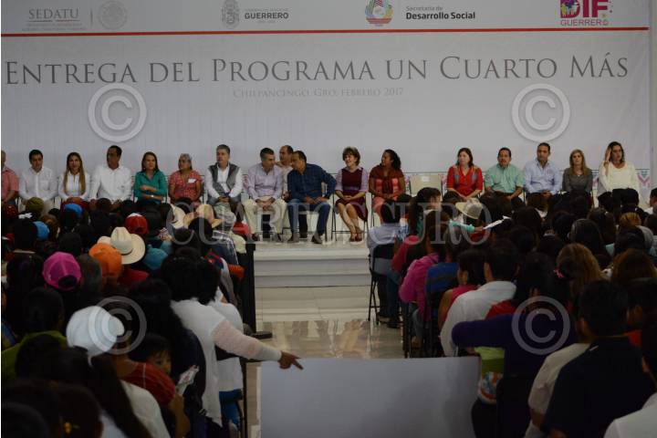 CHILPANCINGO, GUERRERO.18FEBRERO2017.- Héctor Astudillo Flores, Gobernador del Estado, Mercedes Calvo, su esposa, José Manuel Armenta Tello, delegado de la Sedatu, Marco Antonio Leyva Mena, presidente municipal, y las diputadas Isabel Rodríguez Córdova y Maluisa Vargas Mejía, hicieron entrega de apoyos del programa “Un cuarto más”. FOTO: JOSÉ I. HERNÁNDEZ / CUARTOSCURO.COM