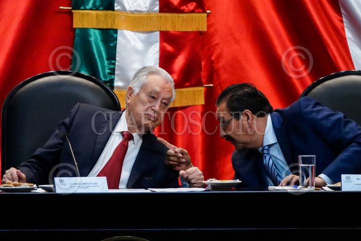 Manuel Bartlett y Reginaldo Sandoval Flores durante la comparecencia del titular de CFE ante la Comisión de Infraestructura y Energía en la Cámara de Diputados.