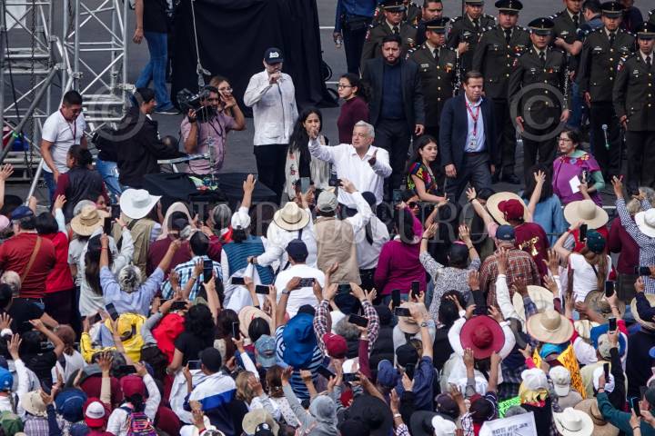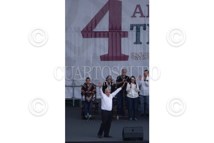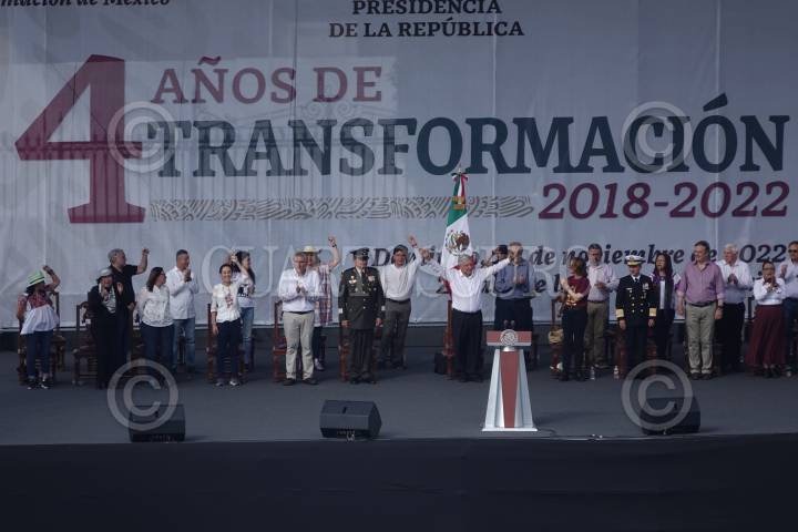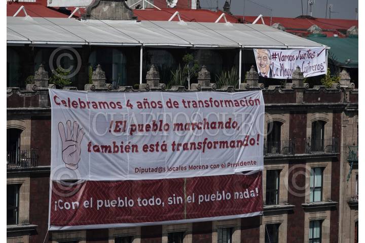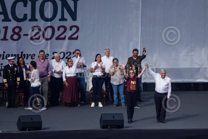 Andrés Manuel López Obrador dirige su mensaje del 4to año de gobierno a miles de simpatizantes en el zócalo.