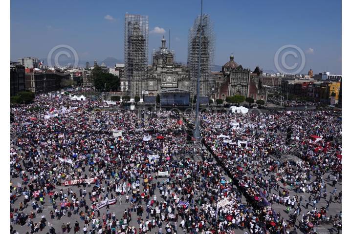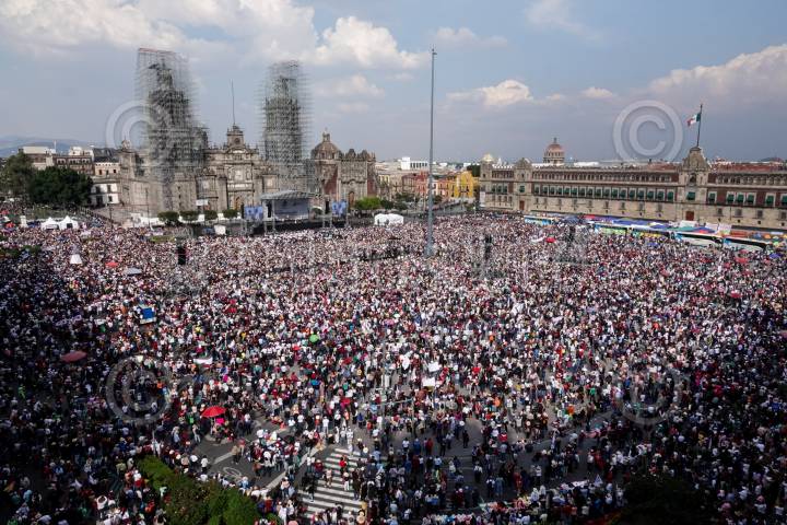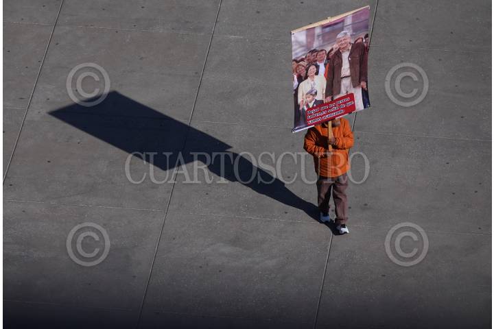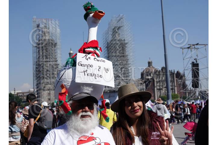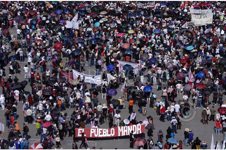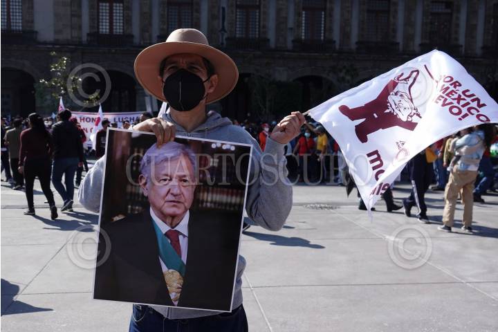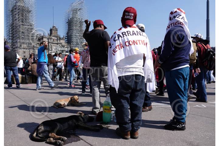 Simpatizantes del presidente Andrés Manuel López Obrador se encuentran en el zócalo expresando su apoyo al presidente