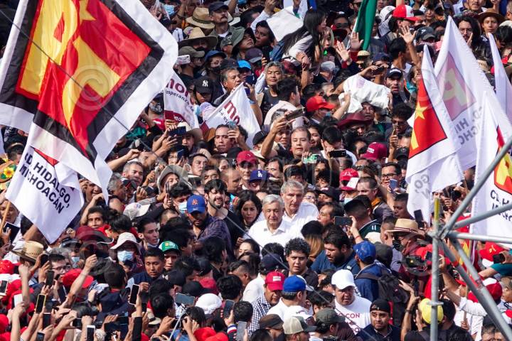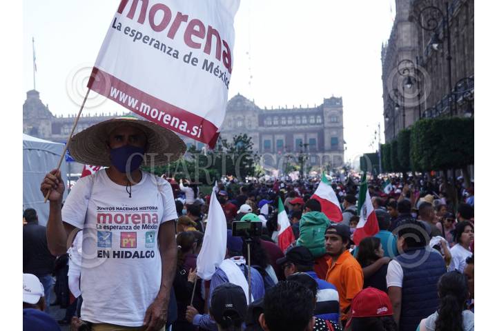 Simpatizantes continúan esperando la llegada del presidente Andrés Manuel López Obrador al zócalo.