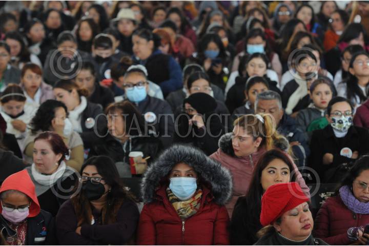 CIUDAD DE MÉXICO, 23NOVIEMBRE2023. - A pesar del frío, decenas de mujeres se dieron cita en el Monumento a la Revolución donde presenciaron el evento por el cuarto aniversario de la Alerta por Violencia contra las Mujeres. FOTO: DANIEL AUGUSTO /CUARTOSCURO.COM