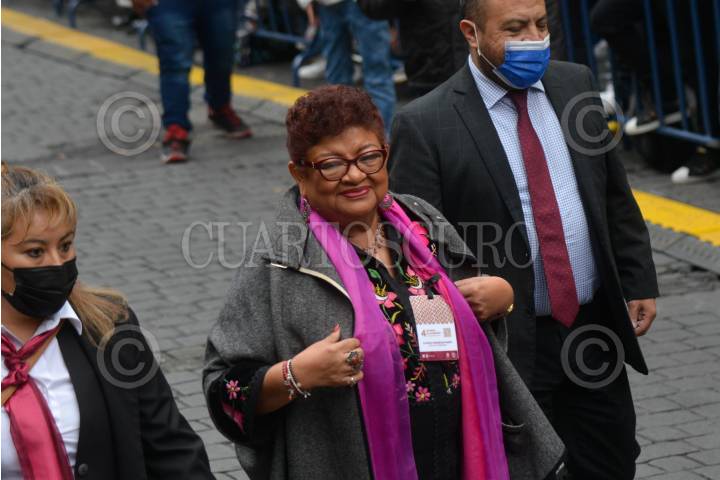 Delfina Gómez, precandidata de Morena a la gubernatura del Estado de México, durante su llegada al Congreso de la Ciudad de México donde Claudia Sheinbaum, jefa de Gobierno, presentó su cuarto informe de gobierno.