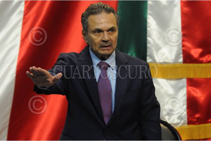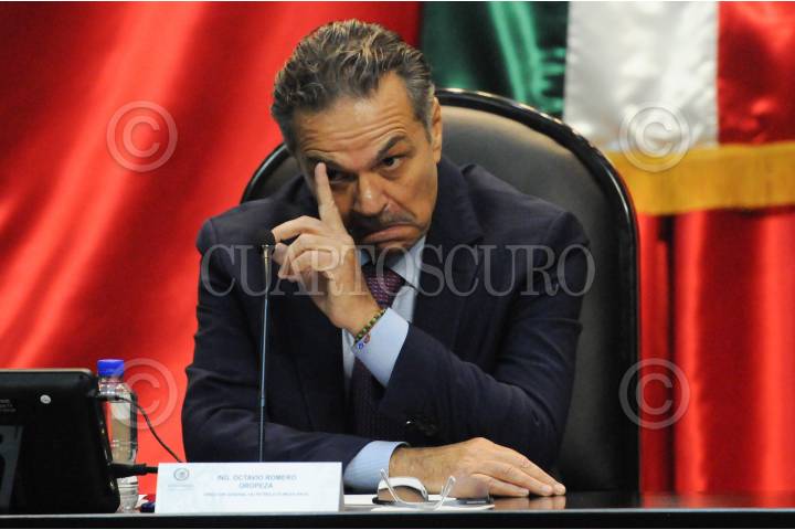 Octavio Romero Oropeza, director de Pemex, escucha los posicionamientos de los distintos grupos parlamentarios.