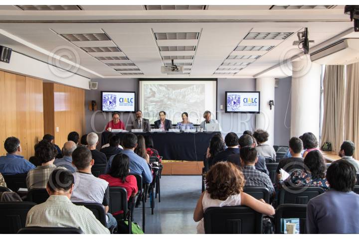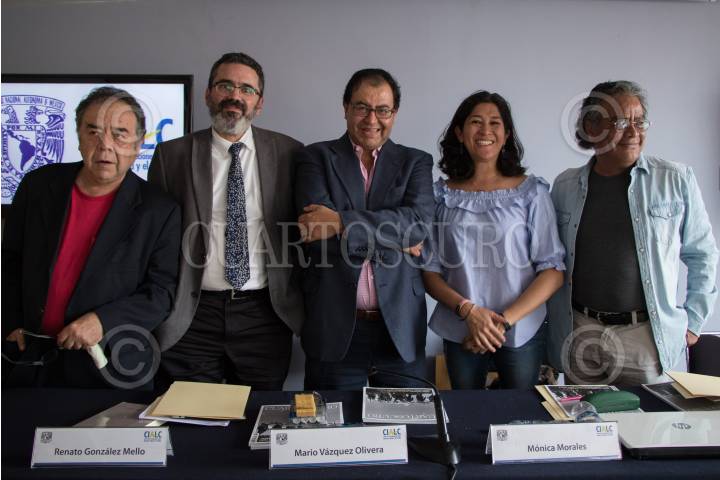 CIUDAD DE MÉXICO, 02MARZO2018.- Victor del Real, escritor y editor, Renato González Mello, investigador especialista en artes, Mario Vázquez Olivera, director del Centro de Investigación sobre América Latina y el Caribe (CIALC), Mónica Morales, investigadora especialista en fotoperiodismo y Pedro Valtierra, fotoperiodista y director de la Agencia y Editora Cuartoscuro, durante la presentación de la revista No. 148 en la CIALC de la Universidad Nacional Autónoma de México. FOTO: ADOLFO VLADIMIR /CUARTOSCURO.COM